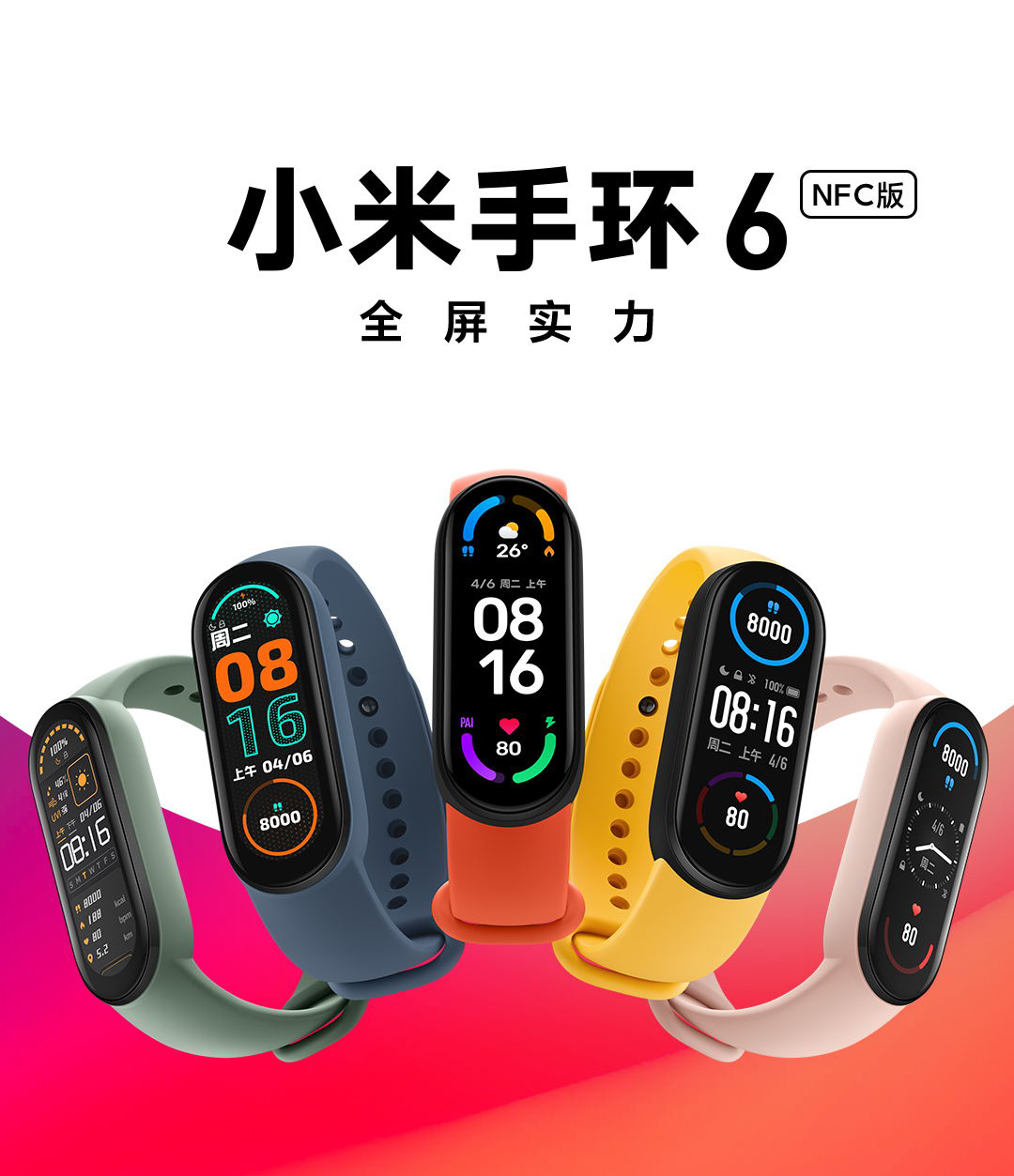 商品名称:小米手环6 NFC版 全面彩屏 离线支付 30种运动模式 24h心率检测 50米防水 智能手环 运动手环
